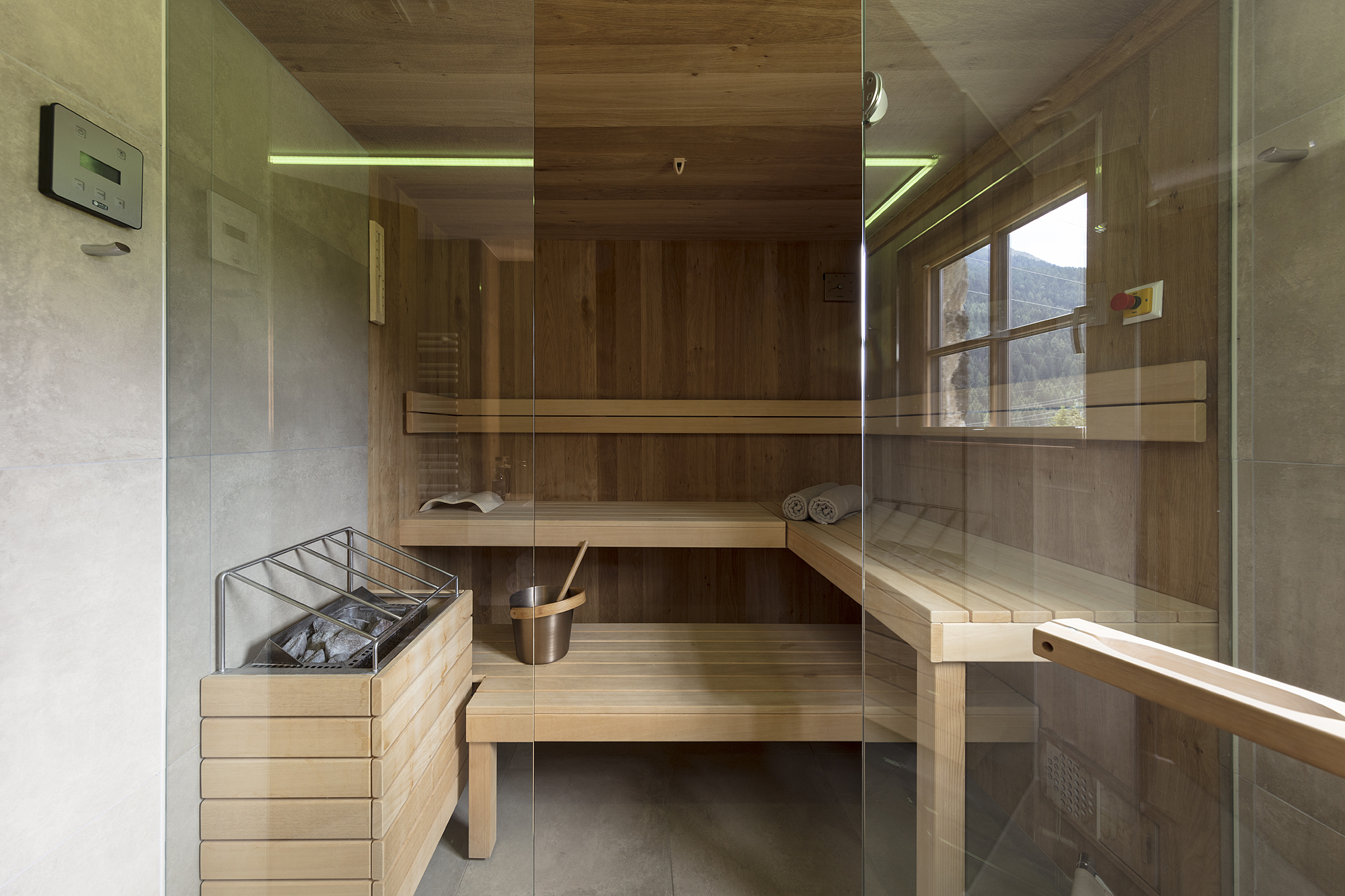 In the bathroom there is not only a walk-in shower but also a private sauna! The sauna can be used as a Finnish sauna or as a bio sauna. Amenities such as bathrobes, vanity mirror, hairdryer and towel dryer are of course also included. The toilet is separate from the bathroom.